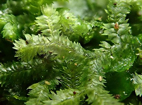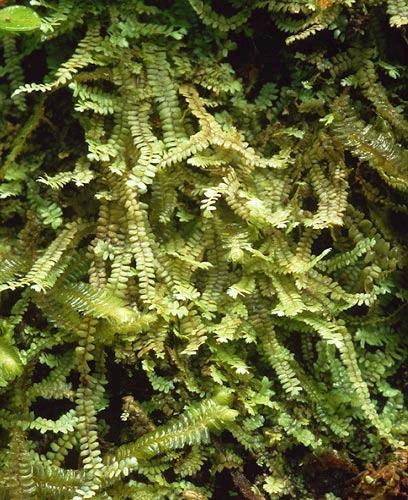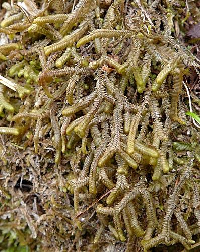 The most distinctive Bazzania with its pale colour, which in the forest light is a blue-green. The leaves are very small - about 2mm long.