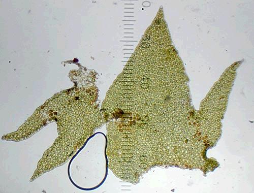 The underleaves on the stem are usually evenly quadrifid, whereas those on a branch usually have two larger segments and two smaller lateral teeth as shown in this image.