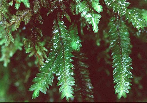 This image to the right shows the "hairy" appearance of the leaves when seen close up, and also a sporophyte.