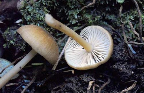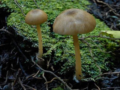 A grey-brown to dark brown species with a darker slightly depressed scurfy centre. Cap diam: 15–35 mm. The stipe is beige-brown, with a yellowish colour towards the base.