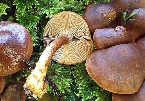 Found in large clumps where there is rotten wood. Cap diam: 40–60 mm.
