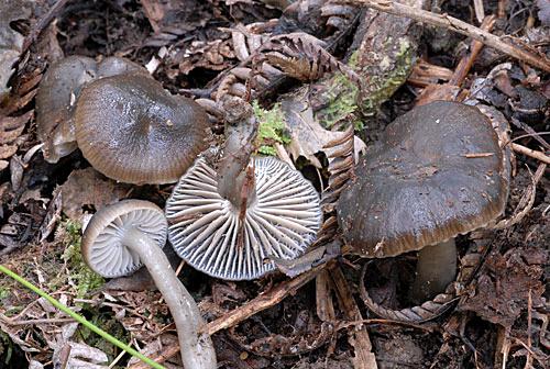 A grey to grey-brown waxgill which can be difficult to spot amongst the leaf litter in a mixed broadleaf-podocarp forest. Cap diam: up to 40 mm.
