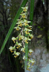 The epiphytic varieties have foliage that is visible all year round. Some, eg. the Earinas, can form large clumps hanging down from tree trunks and produce bunches of flowers that are recognisable as tiny cymbidiums.