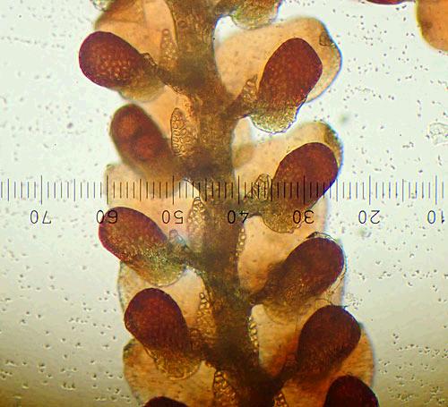 This image shows the lobules of Frullania squarrosula.