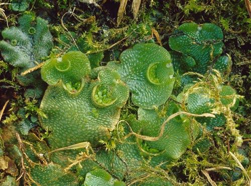 This species could be mistaken for a Marchantia, but the gemmae cups are crescent-shaped.