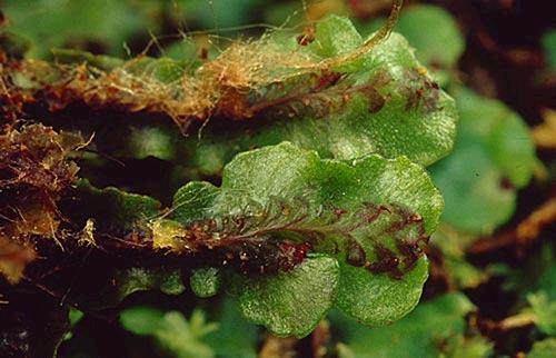 The scales along the midrib underneath the thallus are dark red, but there is also a red colouration to the thallus undersurface itself.
