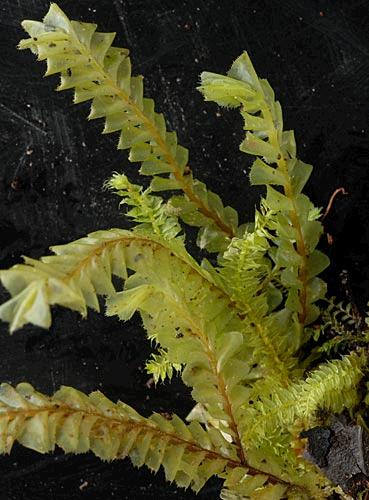 A small plant, found on soil, rocks and logs in shady bush. Rarely found on trees.
