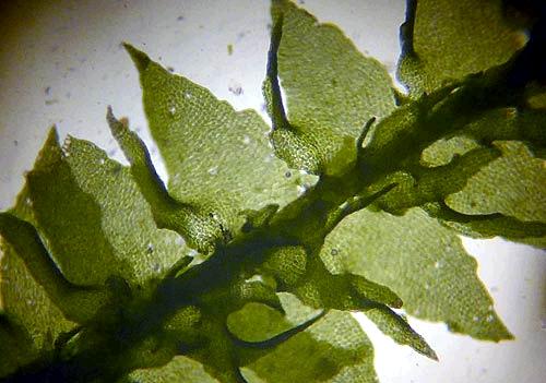 The underleaves on the stem are usually evenly quadrifid, whereas those on a branch usually have two larger segments and two smaller lateral teeth as shown in this image.