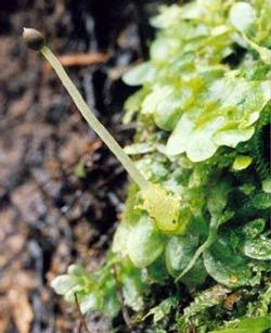 The image to the right shows a sporophyte of Treubia lacunosa.