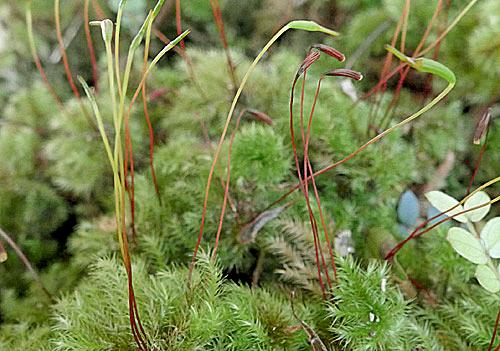 The seta (stalk holding the capsule) is arched, as shown in this image.