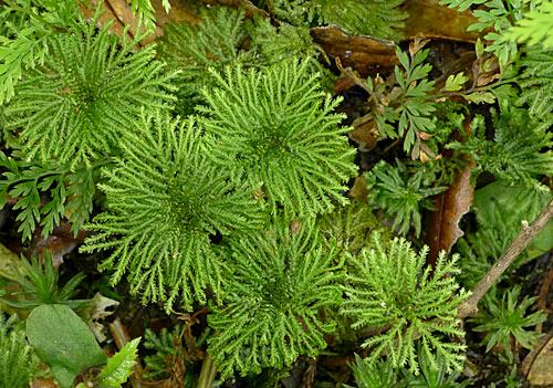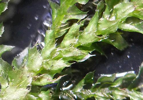 This image to the right shows the "hairy" appearance of the leaves when seen close up, and also a sporophyte.