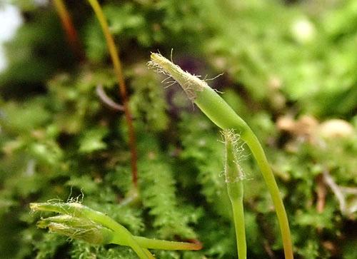 The capsule of Racopilum convolutaceum showing the densely hairy calyptra.