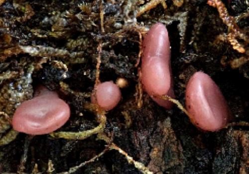 The cup is its sexual (teleomorphic) stage where it produces asci and spores. Diam: 5–15 mm.