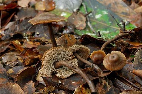 A toothed fungus which is associated with beech. Cap diam: 20–30 mm. Because of its colouring it can be difficult to see amongst the leaf litter and twigs on the forest floor.