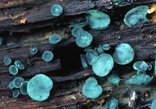 All Chlorociboria species attack wood, staining it a blue-green colour. There are 15 described species in NZ. The stained wood is sought after by woodworkers and crafts people.