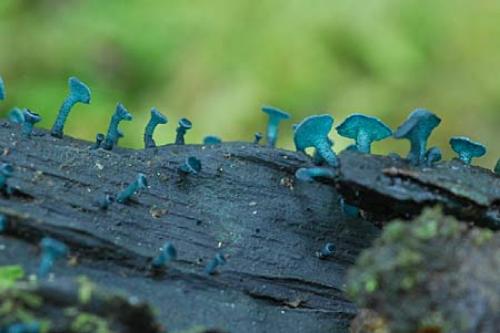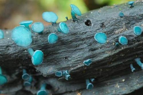 This would be the most common Chlorociboria in NZ. Diam: 2–5 mm.