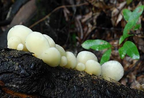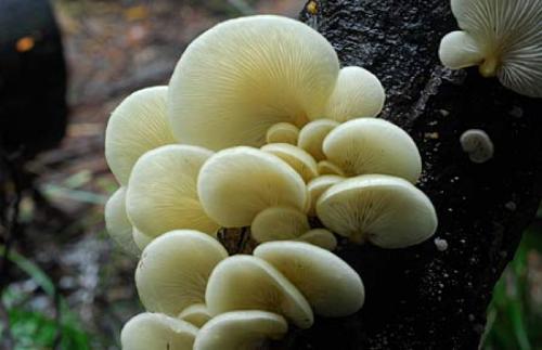 A shell-shaped fungus which grows on wood, especially fallen logs. The short stipe is attached laterally. It is a dirty white to cream colour. The cap is 30–80 mm across.
