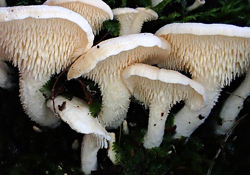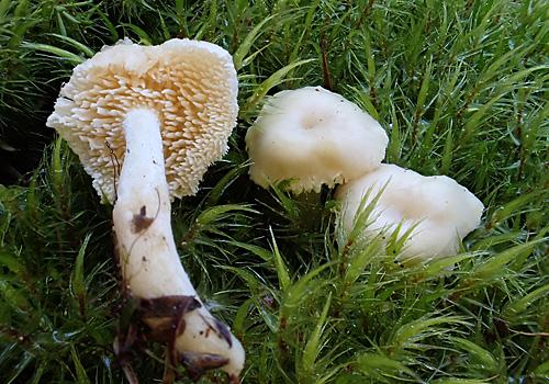 This species is found under beech. It is also cream to white. The stipe on this species is lateral or off-centre.