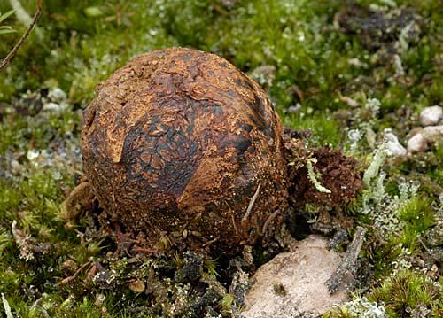 This genus are unusual irregularly globose-shaped fungi. The fruiting bodies grow out of the soil and are a blotchy mixture of various yellow-brown colours. Size: up to 60 x 40 mm. It is mycorrhizal with tea tree (especially Kunzea) and found in the thermal areas of the central North Island.