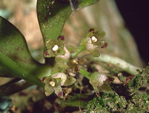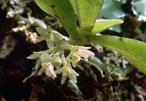 A small epiphytic orchid, a plant being 5 -8cm across.